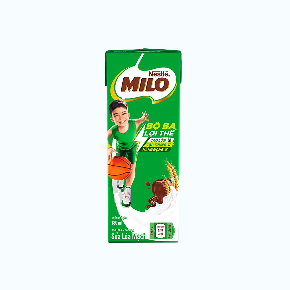Nước, đường, sữa bột tách kem 1.4%, chiết xuất từ mầm lúa mạch chứa glutin, siro glucose, dầu bơ, dầu thực vật, bột ca cao, bột whey, các khoáng chất, vitamin B1, B2, B6…