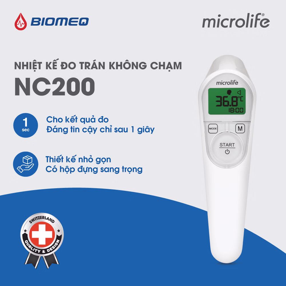 – Ngoài đo nhiệt độ cơ thể người, nhiệt kế đo trán Microlife NC200 còn có thể đo môi trường, vật thể một cách chính xác cực nhanh chỉ trong 1 giây, an toàn và vệ sinh.