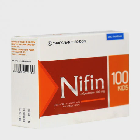 Thuốc cốm pha hỗn dịch uống Nifin 100mg Kids – DHG kháng sinh điều trị nhiễm khuẩn (hộp 24 gói)