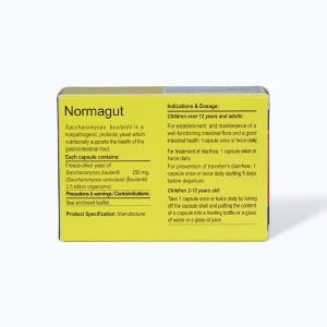 Viên nang Normagut 250mg có thành phần chính là men saccharomyces boulardii – men vi sinh (probiotic) không gây bệnh, có tác dụng cân bằng hệ vi sinh đường ruột, tăng cường hoạt động của men tiêu hóa, phục hồi khả năng tăng hấp thu của niêm mạc ruột, tăng cường hệ miễn dịch, bất hoạt nội độc tố và ức chế sự phát triển của vi khuẩn gây bệnh.