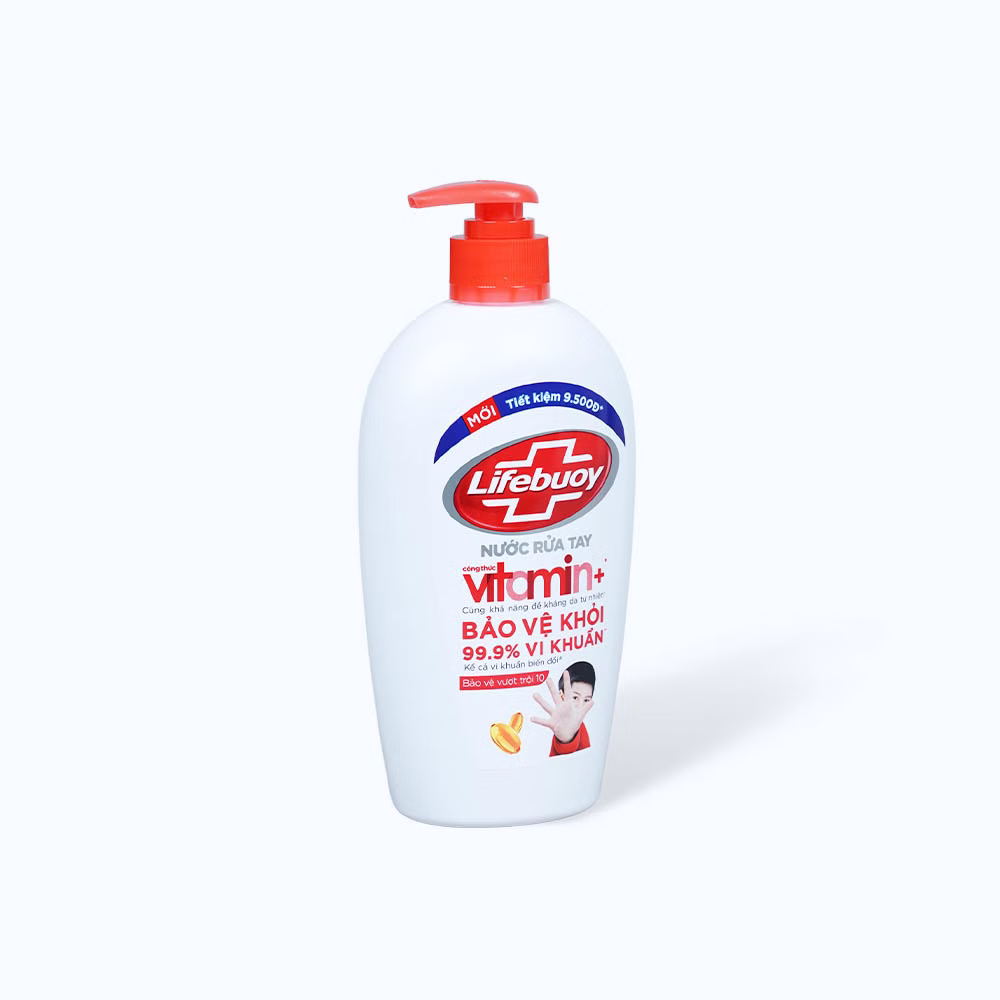 Nước Rửa Tay LIFEBUOY giúp làm sạch tay một cách hiệu quả, loại bỏ đến 99,9% vi khuẩn và các loại vi trùng có hại, bao gồm cả những loại vi khuẩn biến đổi. Với công thức Vitamin+, sản phẩm không chỉ làm sạch mà còn dưỡng ẩm da tay, ngăn ngừa tình trạng khô ráp. Các thành phần như Vitamin B3, C & E giúp hỗ trợ tái tạo da, làm sáng da và tăng cường hàng rào bảo vệ tự nhiên của da tay.