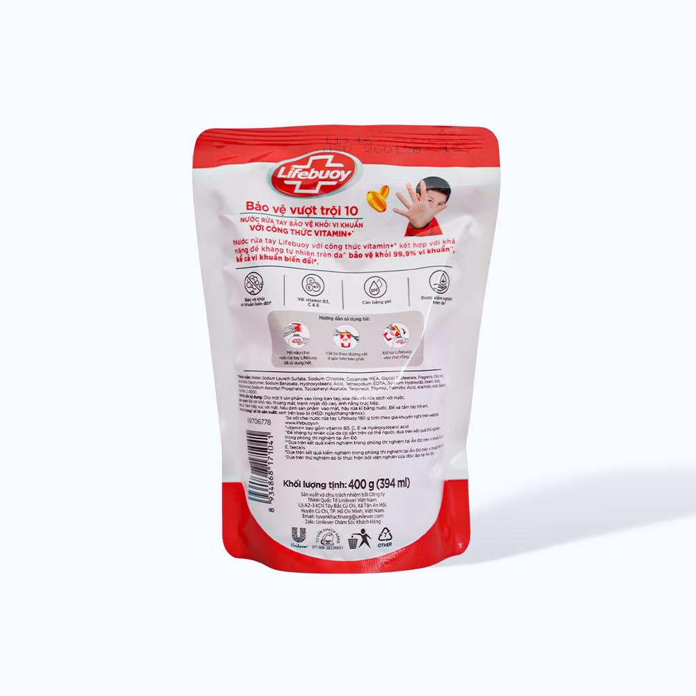 Nước Rửa Tay LIFEBUOY Bảo Vệ Vượt Trội 10 (túi 400g)