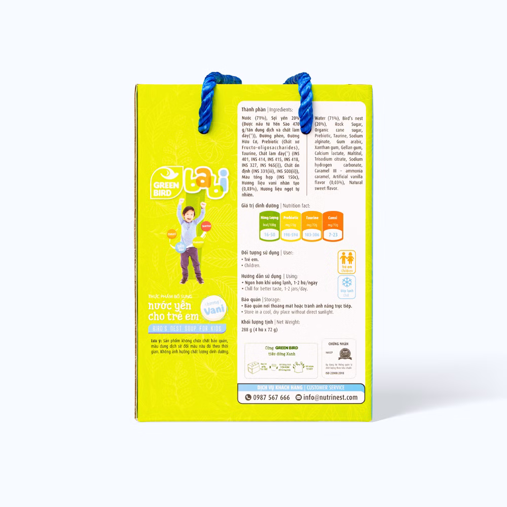 Thành phần Nước Yến Cho Trẻ Em Hương Vani Green Bird BABI (Lốc 4 Hũ)