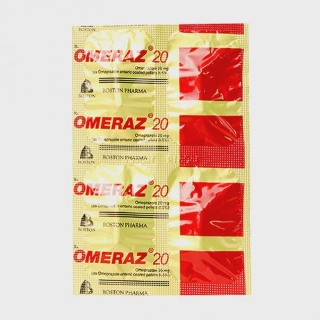 Thuốc Omeraz 20 được sản xuất bởi công ty Boston Pharma, Việt Nam, thuốc có thành phần chính là omeprazol. Thuốc Omeraz 20 được chỉ định trong điều trị hoặc dự phòng tái phát loét dạ dày, tá tràng, kết hợp với các kháng sinh trong điều trị loét dạ dày do nhiễm H.pylor. Điều trị loét dạ dày, tá tràng do NSAID, viêm thực quản trào ngược, triệu chứng bệnh trào ngược dạ dày – thực quản và điều trị hội chứng zollinger – ellison.