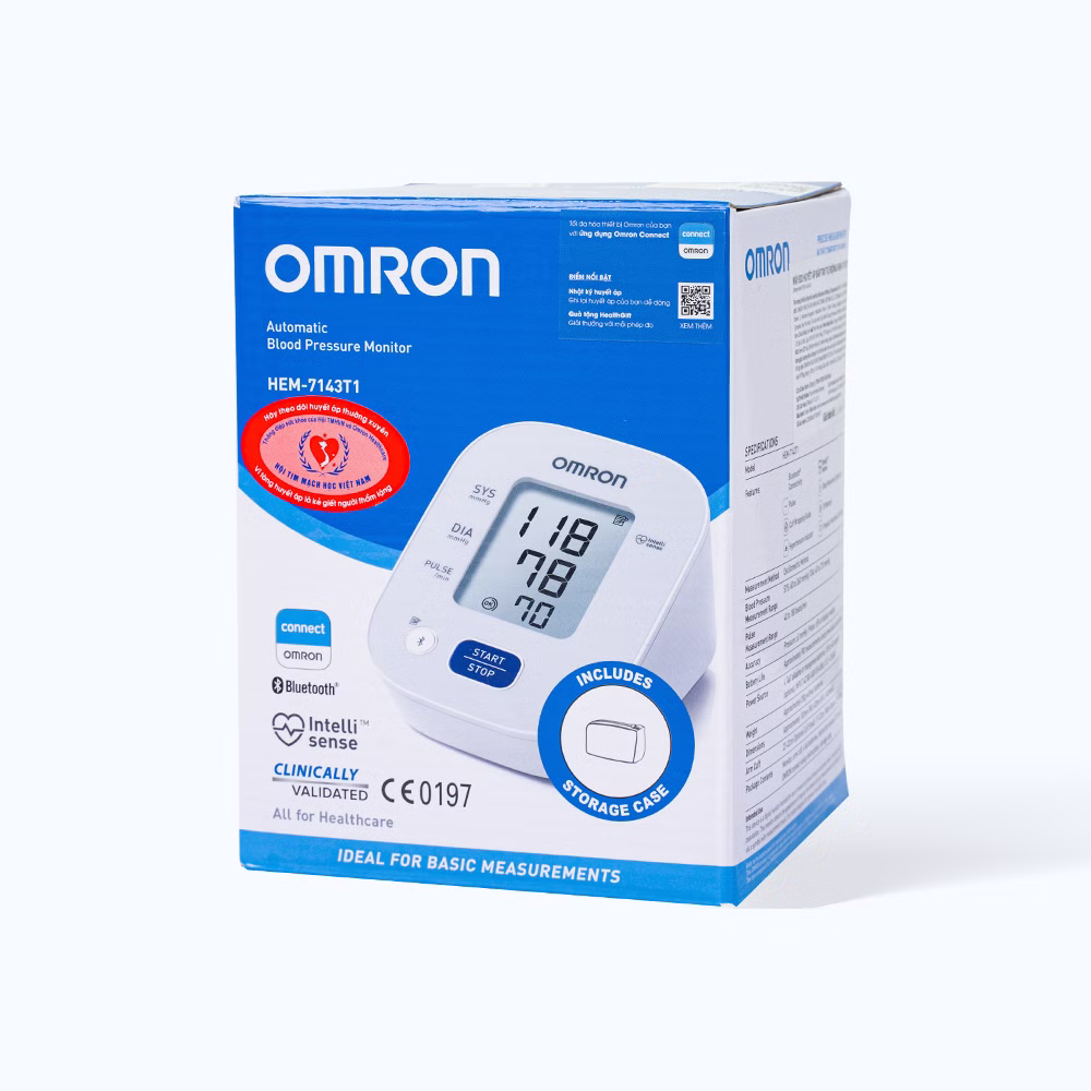Máy đo huyết áp bắp tay tự động Omron HEM 7143T1 cho kết quả chính xác, nhanh chóng (hộp 1 cái)