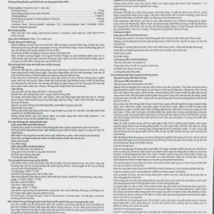 – Tá dược: Lactose khan, Microcrystallin cellulose 112, Croscarmellose natri, Colloidal silicon dioxid, Magnesi stearat