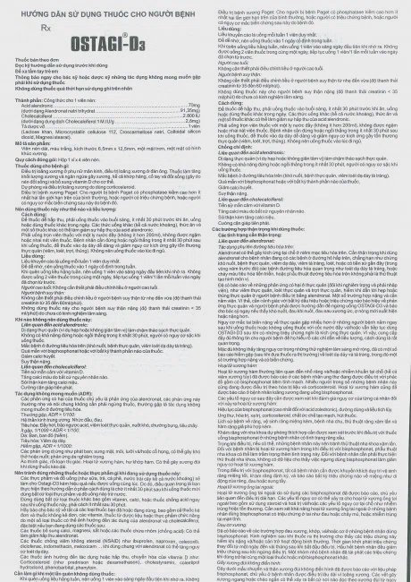 – Các thực phẩm và đồ uống ( như sữa, trà, cà phê, nước trái cây kể cả nước khoáng ) sẽ làm cho Ostagi-D3 kém hiệu quả nếu được uống cùng lúc. Do đó, điều quan trọng là bạn thực hiện theo hướng dẫn ở phần cách dùng là chờ ít nhất 30 phút sau khi uống thuốc mới dùng bất cứ loại thực phẩm và đồ uống nào trừ nước.