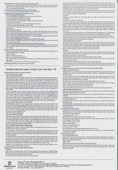 – Hoạt chất: Acid alendronic 70mg, Cholecalciferol 2800IU