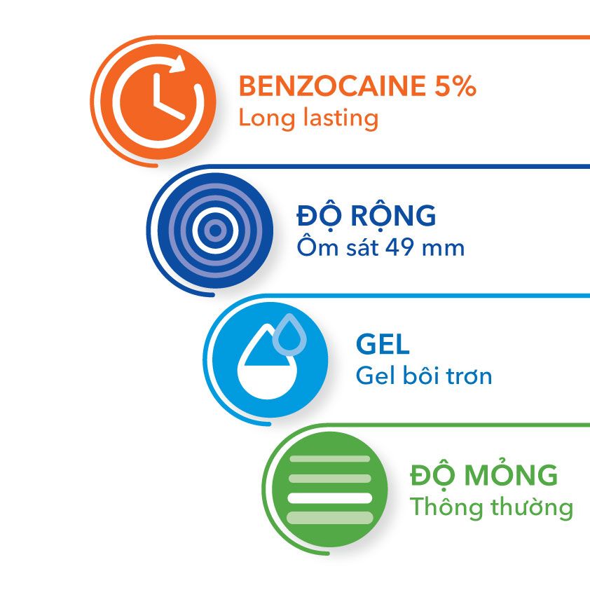 Cao su tự nhiên, chất bôi trơn, Benzocaine.