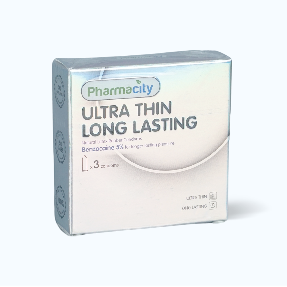 Pharmacity Bao cao su Ultra Thin Long Lasting siêu mỏng kéo dài thời gian yêu (3 cái/hộp)