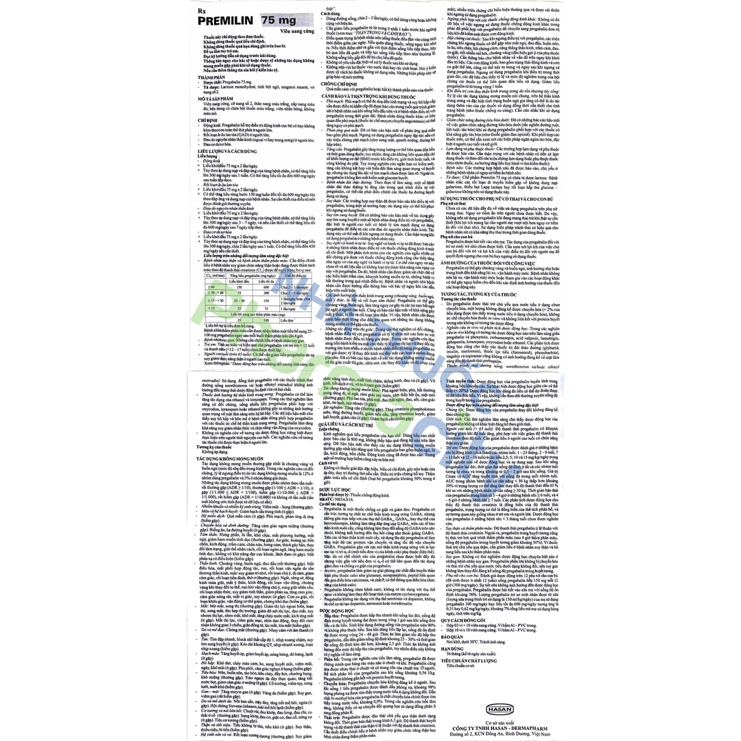 Viên nang Premilin 75mg là thuốc điều trị động kinh và rối loạn lo âu. Mỗi hộp chứa 3 vỉ, mỗi vỉ gồm 10 viên nang. Thành phần chính của Premilin là Pregabalin, một loại thuốc chống co giật và giảm lo âu bằng cách ổn định hoạt động của các tế bào thần kinh trong não. Premilin giúp giảm triệu chứng của động kinh và cải thiện tình trạng lo âu bằng cách điều chỉnh hoạt động điện trong não.