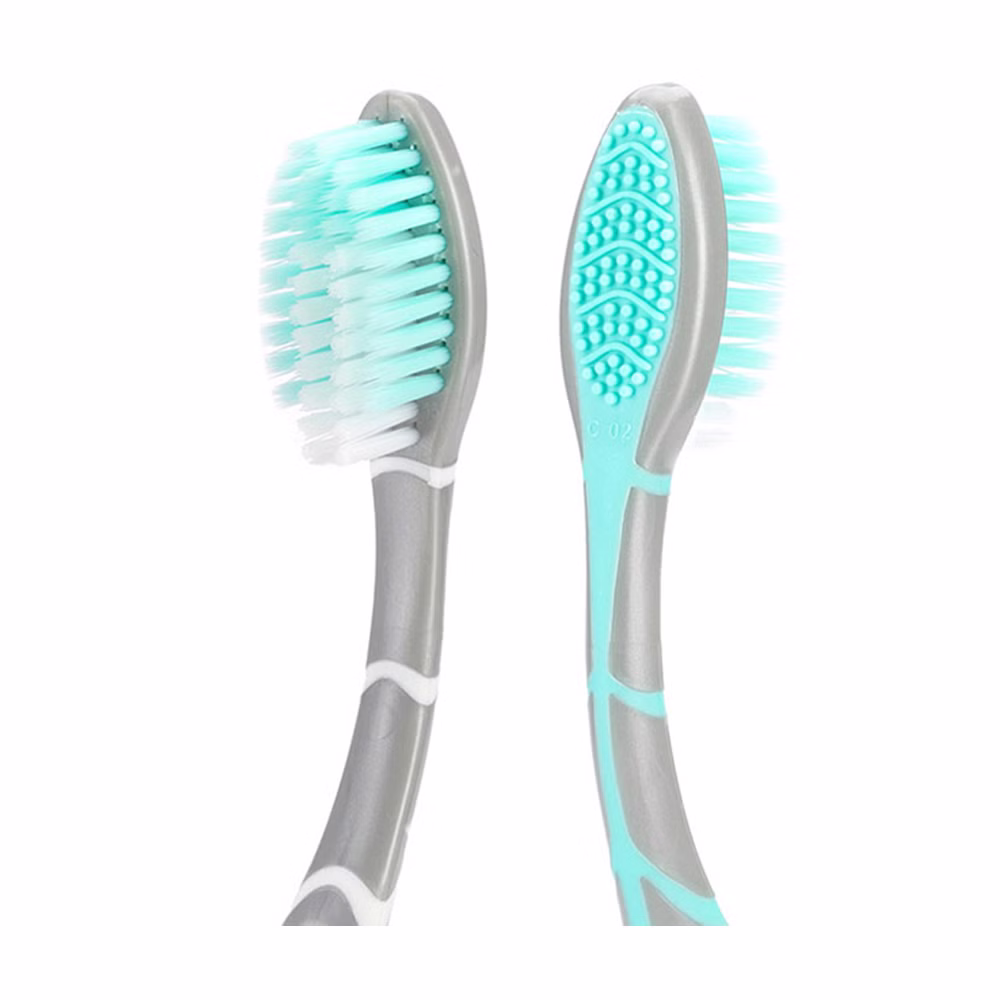Cổ của bàn chải 3 ngấn giúp chải sạch các mặt răng ngay cả răng trong cùng Lấy cảm hứng từ thiên nhiên, với các đầu lông được phủ baking soda có tác dụng làm sạch hoàn hảo. Loại bỏ các mảng bám ngay cả ở trên nướu cho răng sạch khoẻ Mặt chải lưỡi bằng nhựa mềm dẻo mềm mại. Chải sạch lưỡi cho hơi thở thơm mát