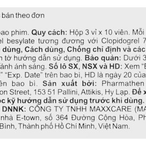 Bệnh nhân nhi: Độ an toàn và hiệu quả của clopidogel ở trẻ em và thanh thiếu niên vẫn chưa được xác định.