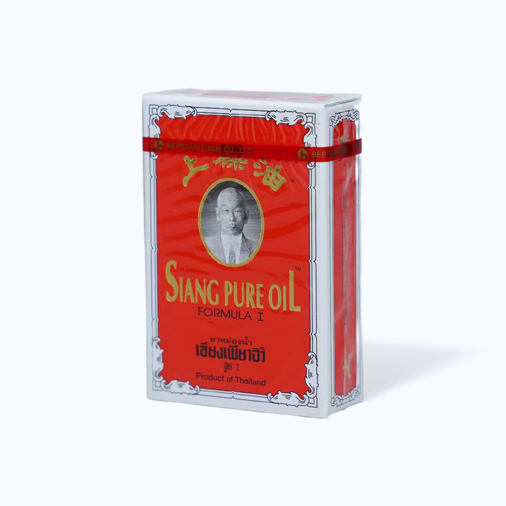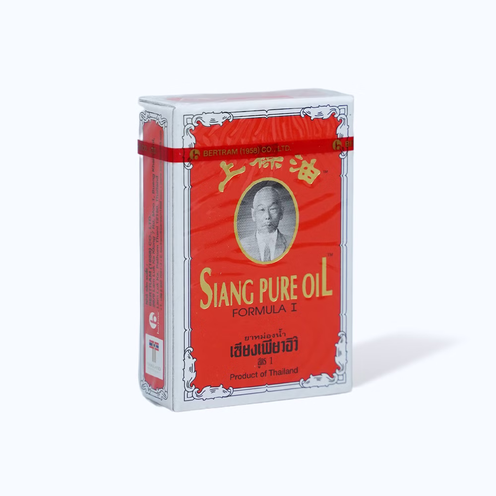 Dầu Siang Pure Oil là một loại dầu xoa bóp có nguồn gốc từ Thái Lan, được sử dụng phổ biến trong y học cổ truyền để giảm đau và làm dịu các triệu chứng như đau cơ, đau khớp, và côn trùng cắn. Thành phần chính của dầu thường bao gồm các loại tinh dầu từ thảo mộc như bạc hà, khuynh diệp, và gừng, mang lại cảm giác mát lạnh và giảm đau tức thì khi xoa lên da. Sản phẩm này thường được đóng gói trong các chai nhỏ, tiện lợi để mang theo và sử dụng khi cần thiết.