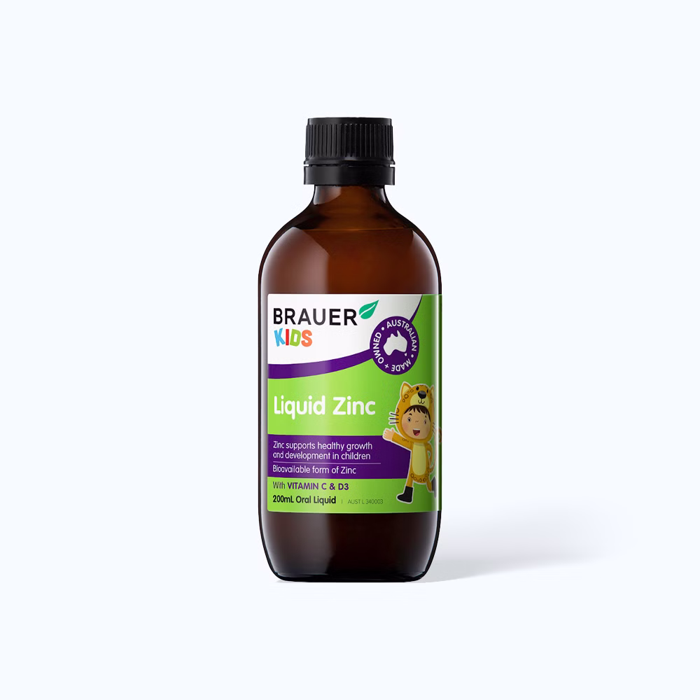 Brauer Baby & Kids Liquid Zinc là thực phẩm bảo vệ sức khỏe được nhập khẩu nguyên hộp từ Úc. Sản phẩm kết hợp kẽm với vitamin C và vitamin D3, giúp tăng cường sức đề kháng và hỗ trợ sự phát triển toàn diện cho trẻ từ 1 đến 13 tuổi.