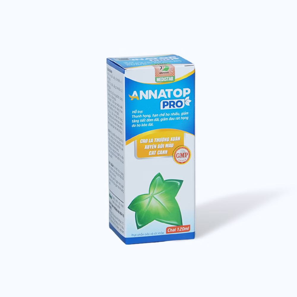 Siro ho Annatop Pro là thực phẩm bảo vệ sức khỏe, giúp hỗ trợ thanh họng, hạn chế ho nhiều, giảm tăng tiết đờm dãi, giảm đau rát họng do ho kéo dài.