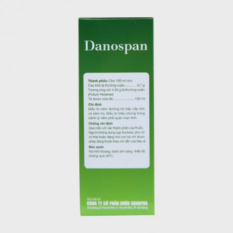 Lưu ý đặc biệt: Cũng như các chế phẩm có nguồn gốc chiết xuất từ thực vật, màu của si ro Danospan đôi khi có thể bị thay đổi. Tuy nhiên, điều này không ảnh hưởng đến hiệu quả điều trị của thuốc.