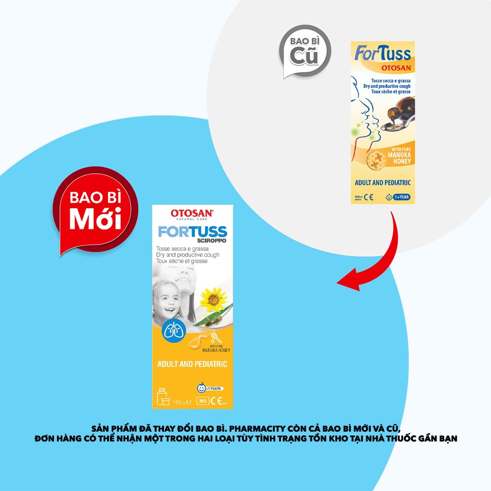 Siro ho – Otosan Fortuss Cough Syrup với công thức giàu hoạt tính từ mật ong Manuka và 7 loại thảo dược Châu Âu, tác động bám dính ngay lên niêm mạc bị kích thích. Với công dụng kháng khuẩn, kháng viêm, siro ho Otosan Fortuss làm dịu và giảm ngay các triệu chứng viêm họng, rát họng, khản tiếng; giúp hóa lỏng đờm và giúp loại bỏ đờm dễ dàng