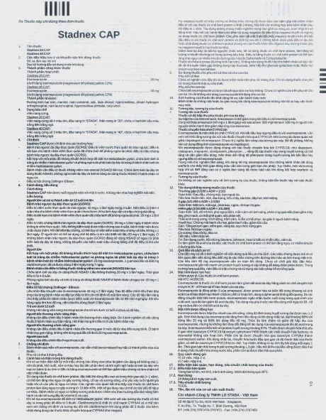 - 1 viên (20 mg) Stadnex 20 CAP + 1 g amoxicillin + 500 mg clarithromycin x 2 lần/ngày x 7 ngày.