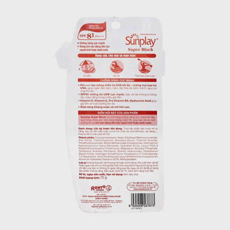Công dụng: Sữa chống nắng dưỡng da, ngăn đen sạm.