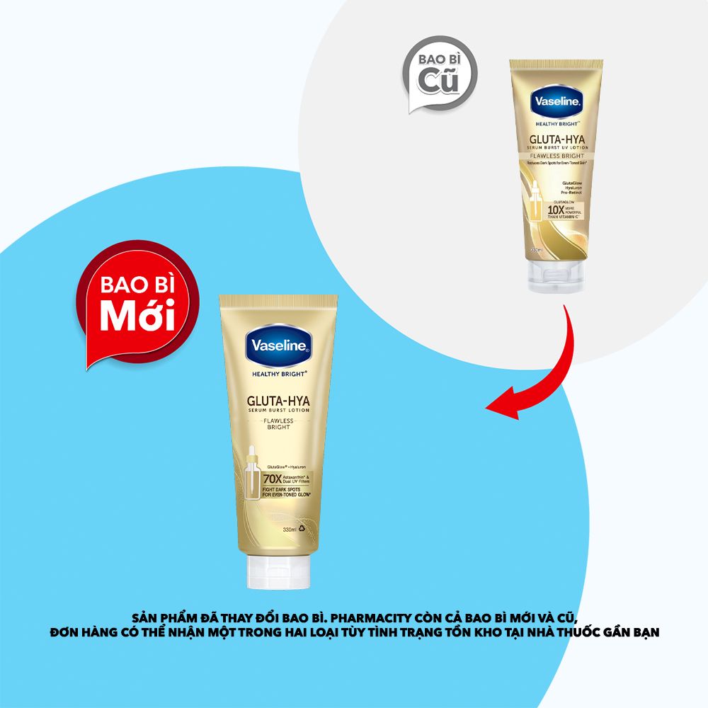 - Nên sử dụng 2 lần mỗi ngày: Vaseline Gluta-Hya Serum Burst UV Lotion Flawless Bright vào buổi sáng và Vaseline Gluta-Hya Serum Burst UV Lotion Dewy Radiance vào buổi tối.