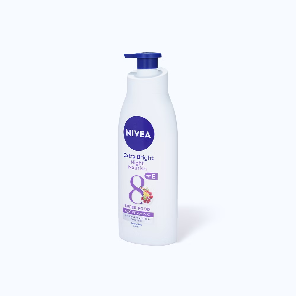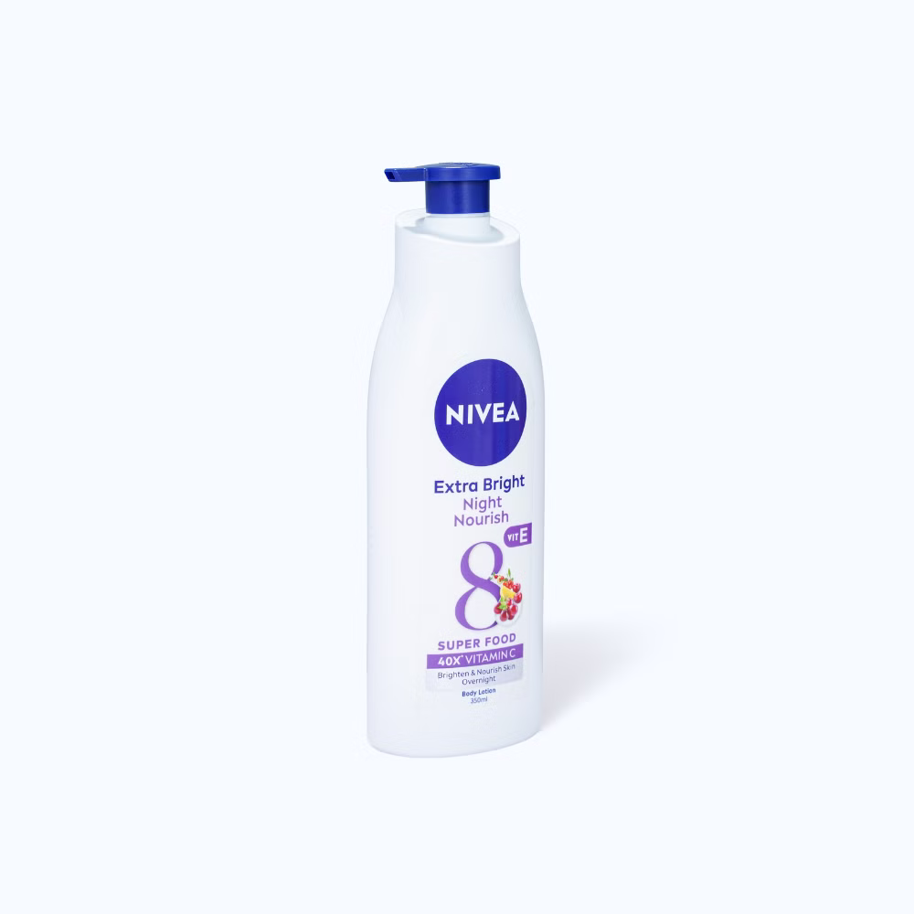 Sữa dưỡng thể trắng da ban đêm Nivea (chai 350ml) là một sản phẩm chăm sóc da toàn thân được thiết kế đặc biệt để dưỡng trắng và cung cấp độ ẩm cho da trong suốt đêm. Với công thức giàu vitamin và dưỡng chất, sản phẩm giúp làm sáng da, giảm thâm nám và mang lại làn da mềm mại, mịn màng.