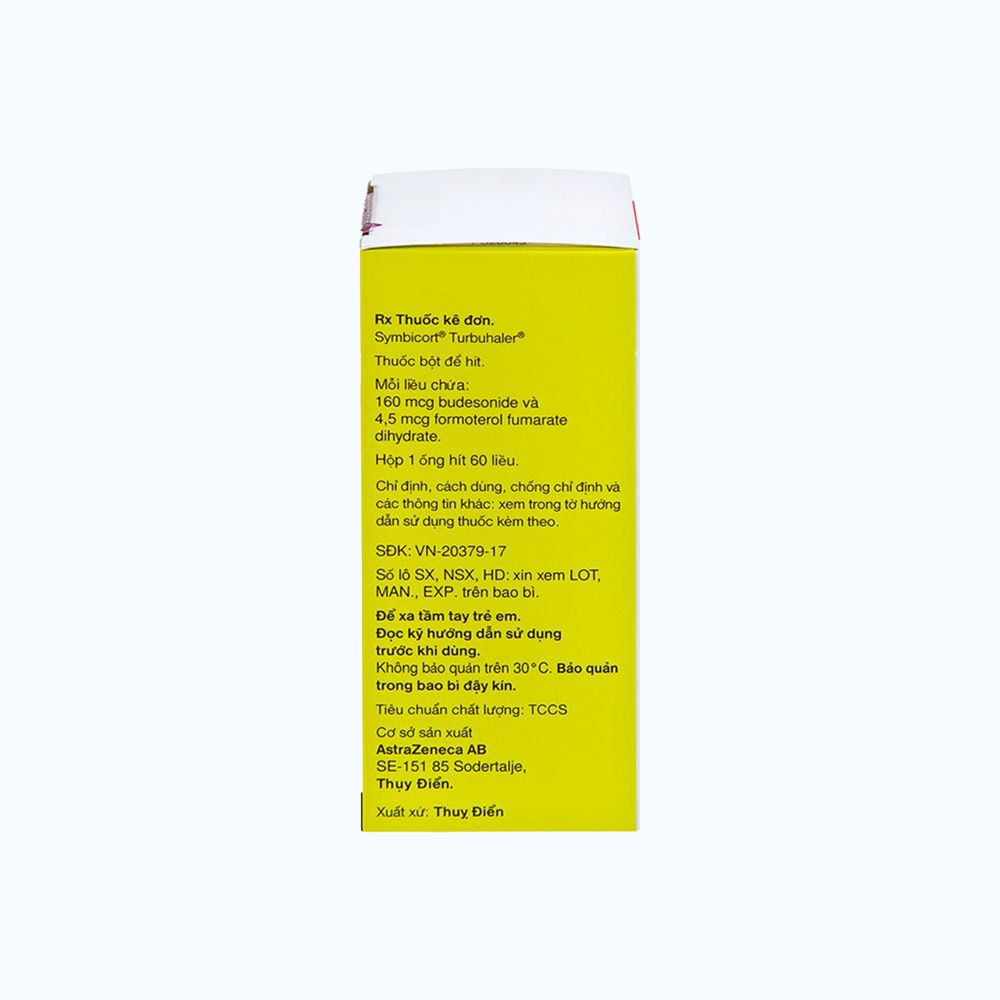 - Symbicort Turbuhaler chứa lactose (<1 mg/lần hít). Lượng lactose này thường không gây vấn đề gì đối với bệnh nhân không dung nạp lactose. (Tá dược lactose chứa một lượng nhỏ protein sữa có thể gây phản ứng dị ứng).