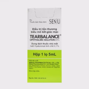 Tearbalance được sản xuất bởi hãng dược phẩm Senju Pharmaceutical, Hàn Quốc, thành phần chính là Sodium hyaluronate tinh khiết, là thuốc dùng trong tổn thương biểu mô giác – kết mạc do các nguyên nhân: Hội chứng Sjogren, Stevens – Johnson, khô mắt do tác động bên ngoài, phẫu thuật, thuốc chấn thương, mang kính sát tròng.