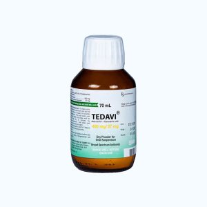Khi cho các người nam và nữ khỏe mạnh (trong tình trạng đói) uống một liều đơn 5 mL hỗn dịch Tedavi 457 mg/ 5 mL, các thông số dược động học đã đạt được là: Cmax 5,789 µg/mL, Tmax 1,164 giờ, AUC0-t 12,21 µg/mL/giờ và AUC0-∞ = 12,855 µg/mL/giờ đối với amoxicillin, và 1,379 µg/mL, 1,039 giờ, 2,492 µg/mL/giờ và 2,727 µg/mL/giờ tương ứng, đối với acid clavulanic.