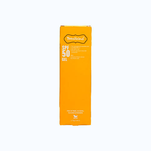 Gel chống nắng Teenilicious SPF 50 Gel giúp bảo vệ da trước tác hại của tia UV và giúp làm dịu da. Sản phẩm thích hợp cho mọi loại da, đặc biệt cho da mụn và da nhạy cảm.