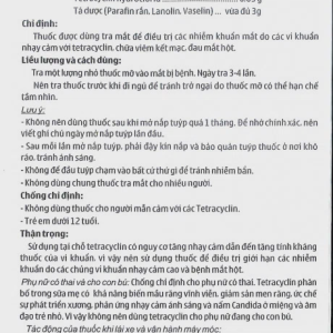 Công dụng của Thuốc mỡ tra mắt Tetracyclin 1%