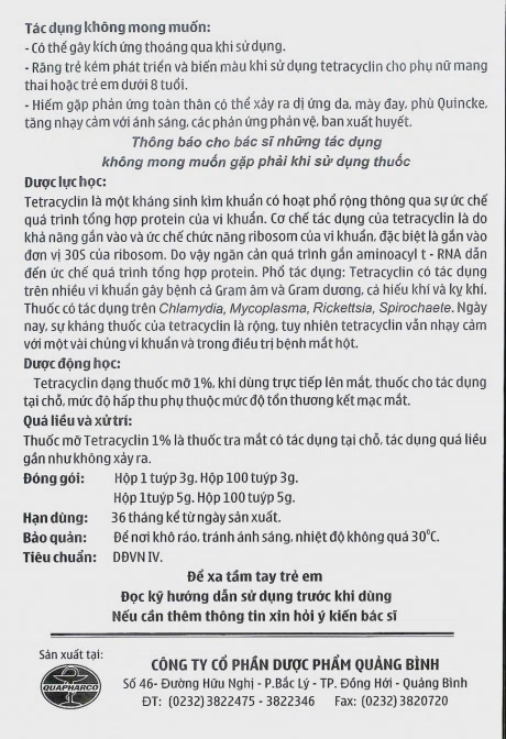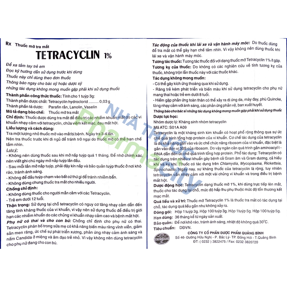 Thuốc mỡ tra mắt Tetracyclin 1% là gì ?