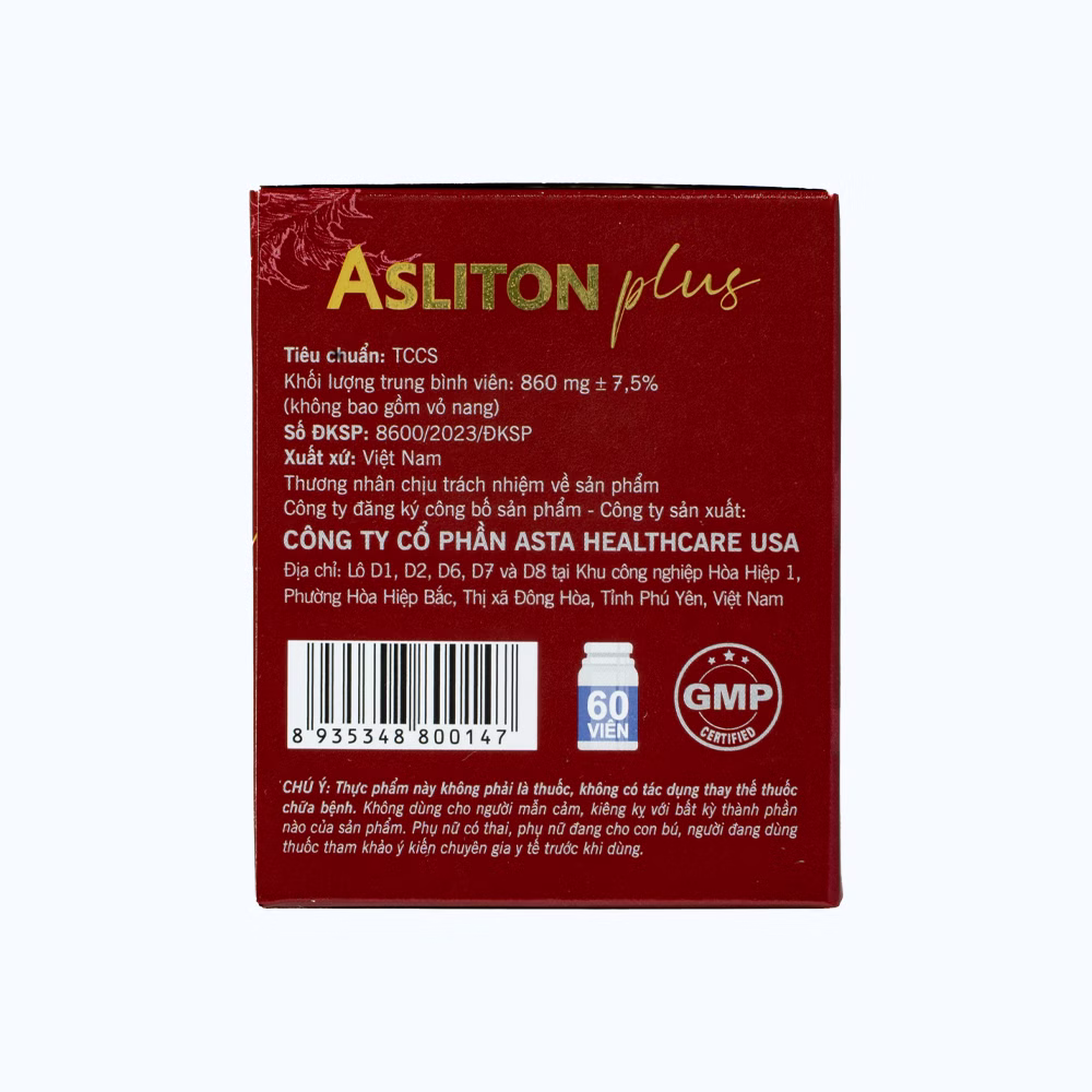 Thực phẩm bảo vệ sức khỏe Asliton Plus hỗ trợ thanh nhiệt, bảo vệ gan, giải độc gan (Hộp 60 viên)