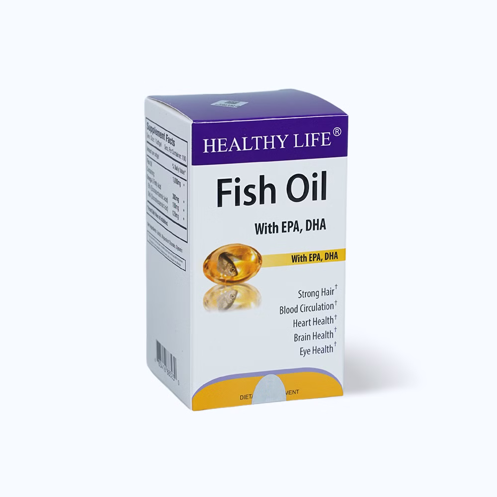 Dầu cá: 1000mg (chứa 300mg Acid béo Omega 3 (trong đó EPA 180mg, DHA 120 mg)).