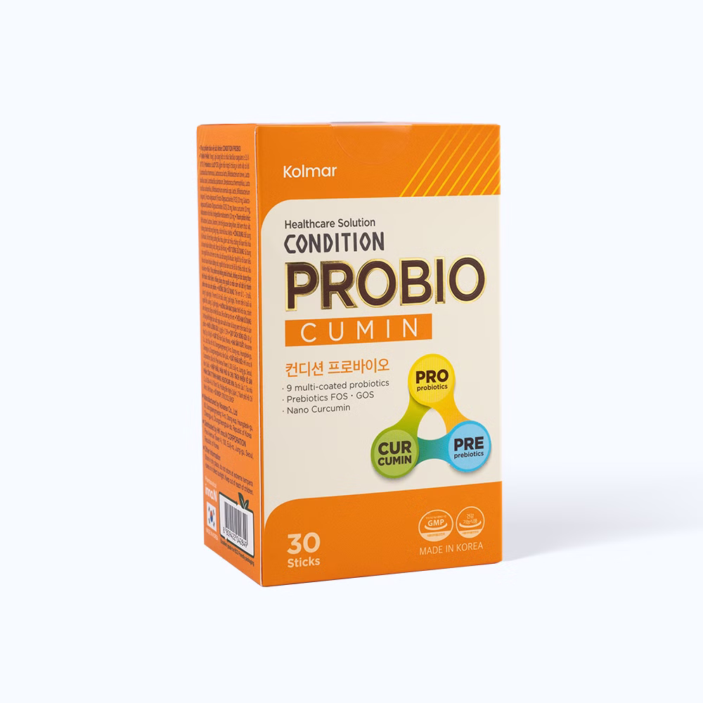 Trong 1 gói dạng bột có chứa:Bacillus coagulans ≥ 3,5×10⁹ CFU, Probiotics ≥ 1×10⁸ CFU [Gồm hỗn hợp 9 chủng vi sinh vật có lợi (Lactobacillus rhamnosus, Lactococcus lactis, Bifidobacterium breve, Lactobacillus casei, Lactobacillus plantarum, Streptococcus thermophilus, Lactobacillus acidophilus, Bifidobacterium animalis spp. lactis, Bifidobacterium longum)], Fructo-oligosaccharide (FOS) 20 mg, Galacto-oligosacarit (GOS) 20 mg, Nano Curcumin 20 mg, Maltodextrin khó tiêu 20 mg.