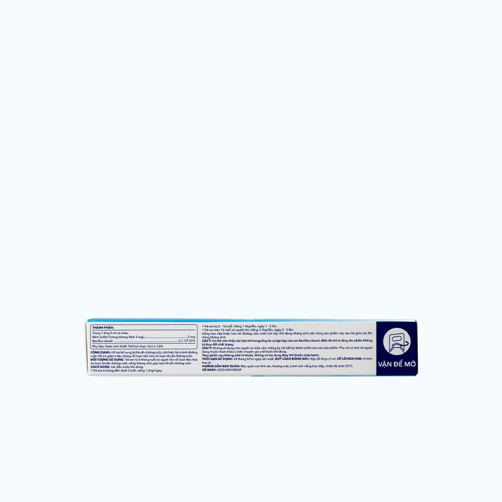 Có thể nhìn thấy các hạt nhỏ trong ống do sự tập hợp của các Bacillus clausii, điều đó chỉ ra rằng sản phẩm không bị thay đổi chất lượng