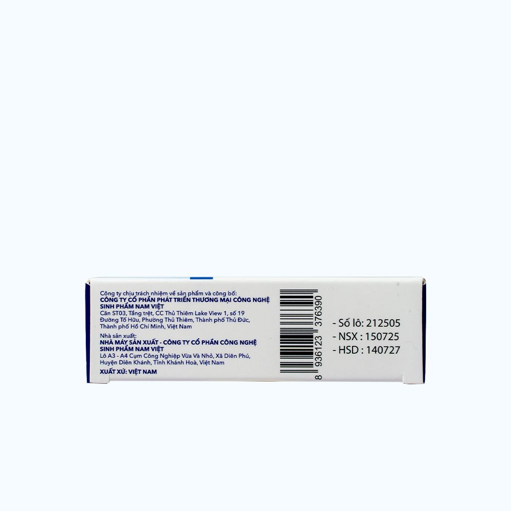 Công ty chịu trách nhiệm về sản phẩm và công bố: CÔNG TY CỔ PHẦN PHÁT TRIỂN THƯƠNG MẠI CÔNG NGHỆ SINH PHẨM NAM VIỆT
