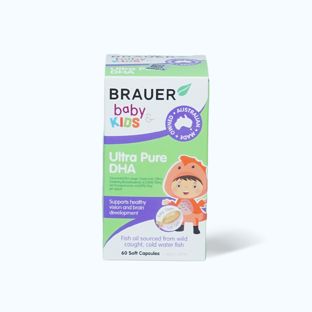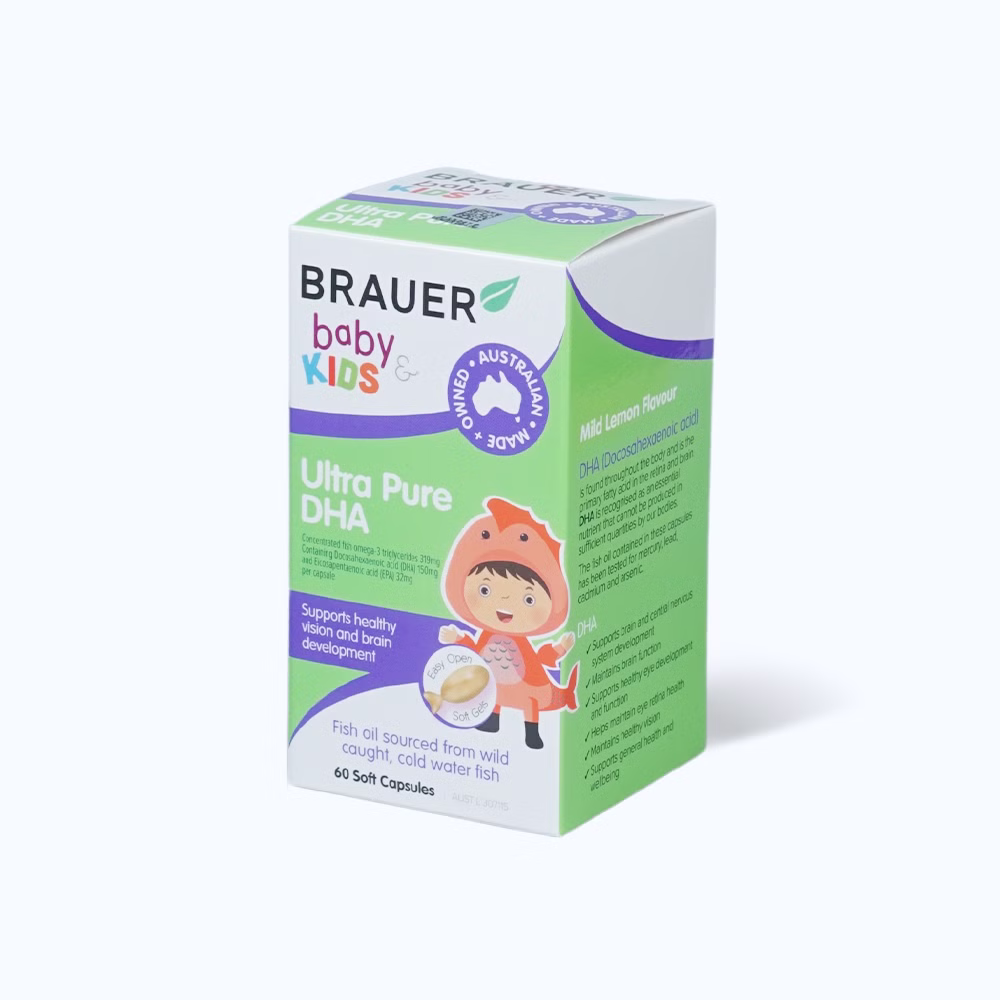 Brauer Baby & Kids Ultra Pure DHA là sản phẩm hàng đầu cung cấp DHA tinh khiết, được chọn lọc từ nguồn dầu cá chất lượng cao. Sản phẩm mang lại dưỡng chất thiết yếu để hỗ trợ sự phát triển não bộ và hệ thần kinh của trẻ. Với thành phần chính là omega-3, sản phẩm không chứa phụ gia gây hại, đảm bảo an toàn tuyệt đối cho sức khỏe của bé. Brauer Ultra Pure DHA được nhập khẩu trực tiếp từ Úc, phù hợp cho trẻ từ 7 tháng tuổi trở lên.
