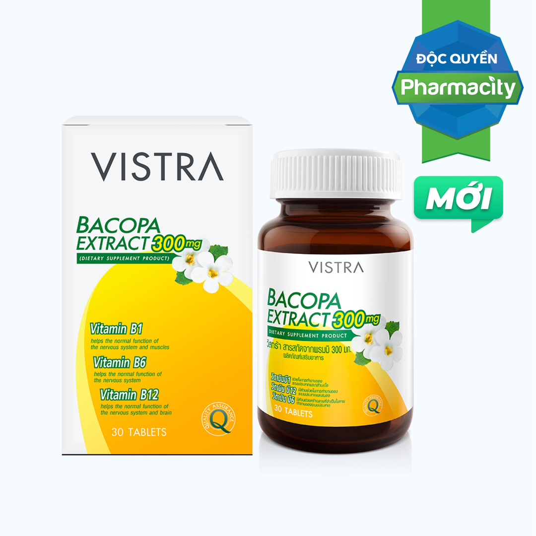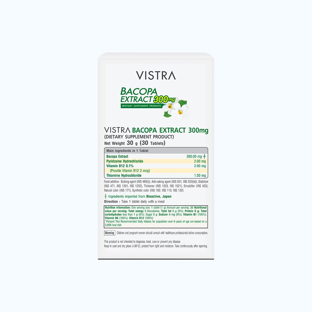 Thực phẩm bảo vệ sức khỏe Vistra Bacopa Extract 300 mg (hộp 30 viên)