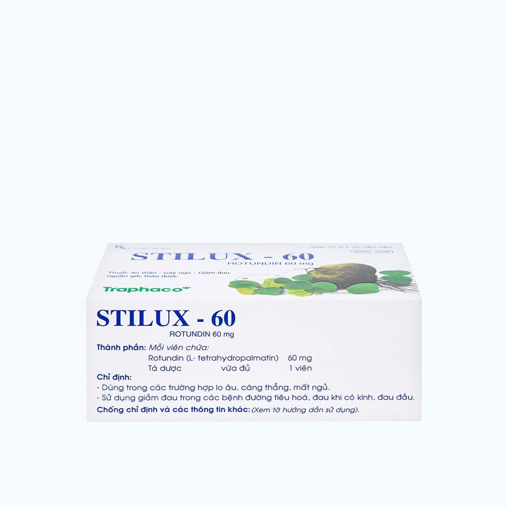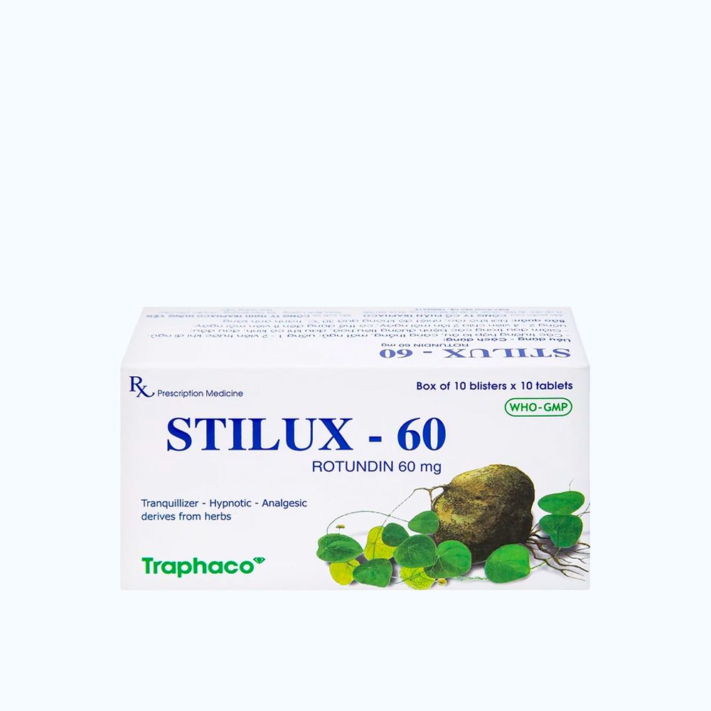 Hoạt chất của STILUX-60 là rotundin (L-tetrahydropalmatin) được chiết xuất từ củ Bình vôi (Stephannig rotunda Lour.), một loại thảo dược mọc hoang ở các vùng núi Việt Nam, Trung Quốc… Nó được sử dụng từ lâu trong dân gian dạng dịch chiết hỗn hợp, nay đã được nghiên cứu đầy đủ về cấu trúc hóa học, tính chất vật lý, độc tính, dược lý học và ứng dụng trên lâm sàng. Kết quả các công trình nghiên cứu của Nga, Trung Quốc, Nhật Bản và Việt Nam đã chứng minh: