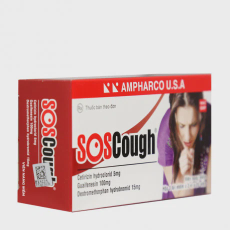 Thuốc SOSCoughđược sản xuất bởi Công ty cổ phần dược phẩm AMPHARCO U.S.A, thuốc điều trị các chứng ho do họng và phế quản bị kích thích khi cảm lạnh hoặc khi hít phải chất gây kích thích