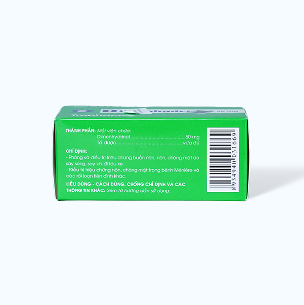 Viên nén Dimenhydrinat Traphaco là một loại thuốc được sản xuất bởi công ty Traphaco, có thành phần chính là dimenhydrinat. Dimenhydrinat là một hợp chất kháng histamin, thường được sử dụng để điều trị và phòng ngừa các triệu chứng buồn nôn, chóng mặt, và say tàu xe.