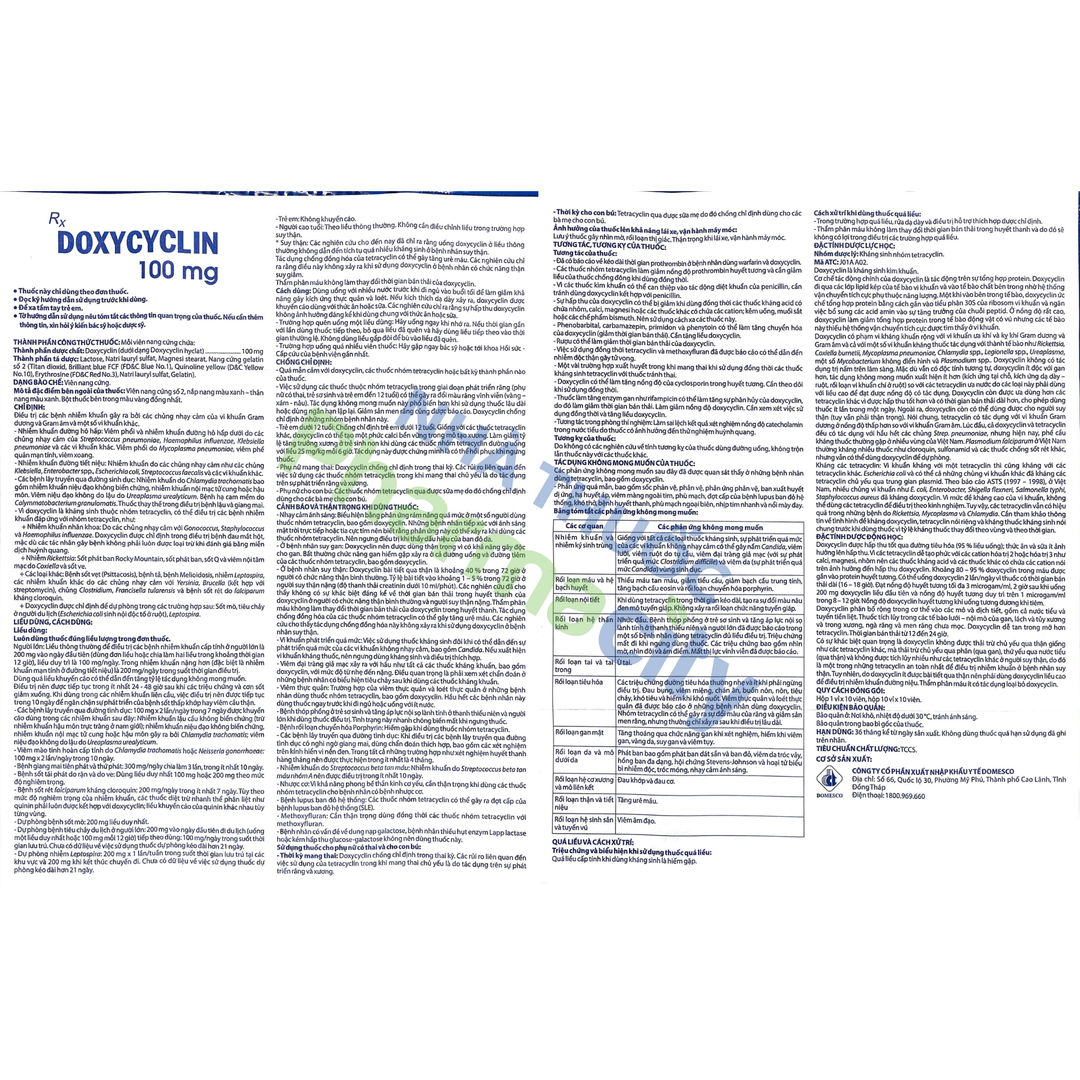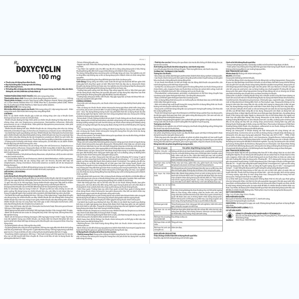 Công dụng viên nang Doxycylin 100mg Domesco