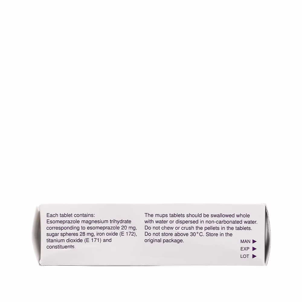 Viên nén Nexium-MUPS 20mg là một loại thuốc được sử dụng để điều trị các bệnh lý liên quan đến dạ dày và thực quản, như viêm thực quản do trào ngược dạ dày thực quản (GERD) và loét dạ dày. Thành phần chính của thuốc là Esomeprazole, một loại thuốc ức chế bơm proton (PPI) có tác dụng giảm lượng acid dạ dày sản xuất ra. Nexium-MUPS 20mg giúp làm giảm các triệu chứng như đau bụng, ợ chua, và khó tiêu, đồng thời hỗ trợ lành vết loét dạ dày và thực quản. Viên nén có thể được dùng trước bữa ăn, thường là một lần mỗi ngày, theo chỉ dẫn của bác sĩ.
