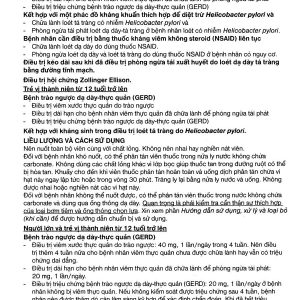 - Chữa lành loét dạ dày do dùng thuốc NSAID: Liều thông thường 20mg, 1 lần/ngày. Thời gian điều trị là 4 – 8 tuần.