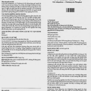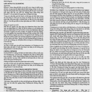 - Tất cả các tác dụng không mong muốn do sử dụng Adapalene và Clindamycin trong các thử nghiệm lâm sàng đều hồi phục được sau khi ngừng điều trị.