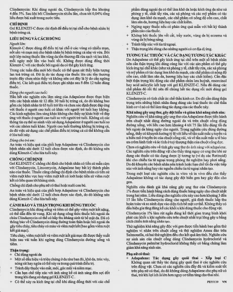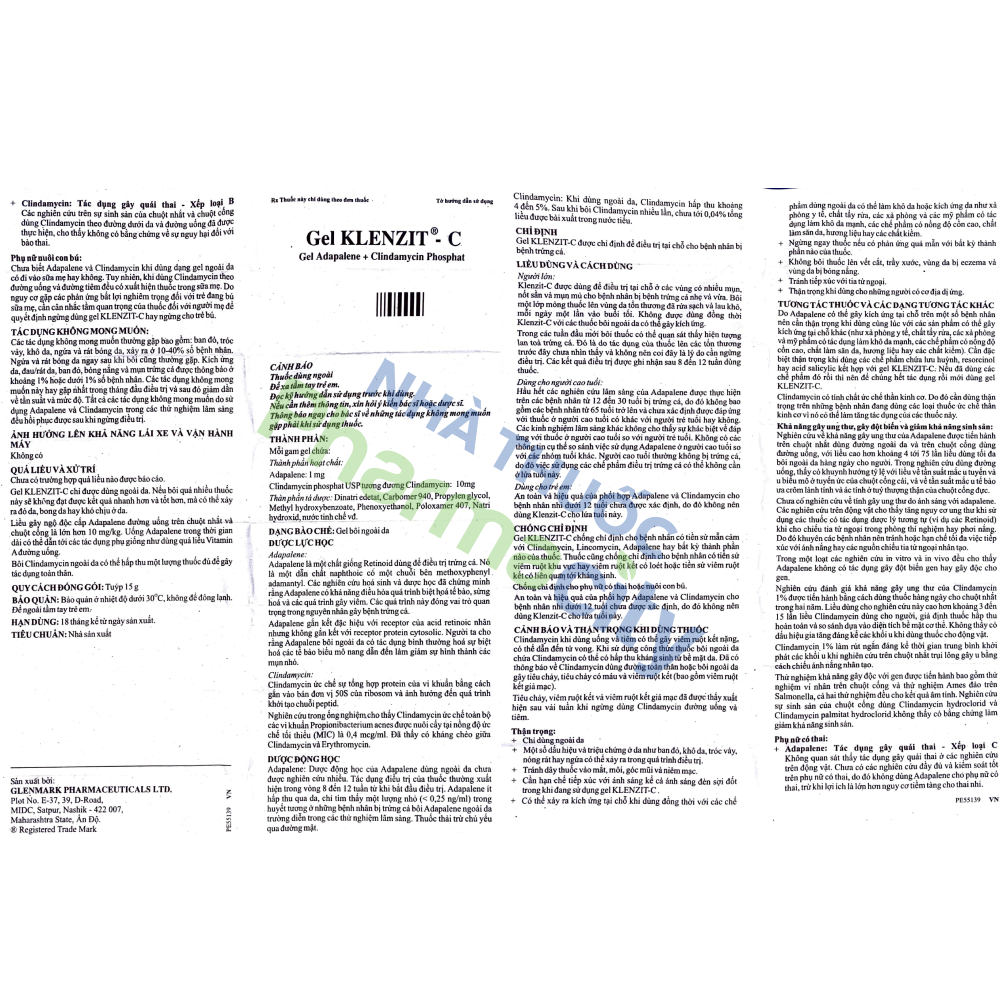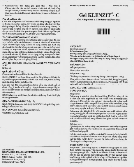 Klenzit-Clà một loại thuốc bôi da dùng trong điều trị mụn trứng cá, kết hợp hai hoạt chất chính là Adapalene và Clindamycin Phosphat