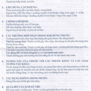- Người lớn: Mỗi lần uống 1 muỗng cà phê (5 ml) hoặc 1 ống 5ml, ngày 3 – 4 lần.