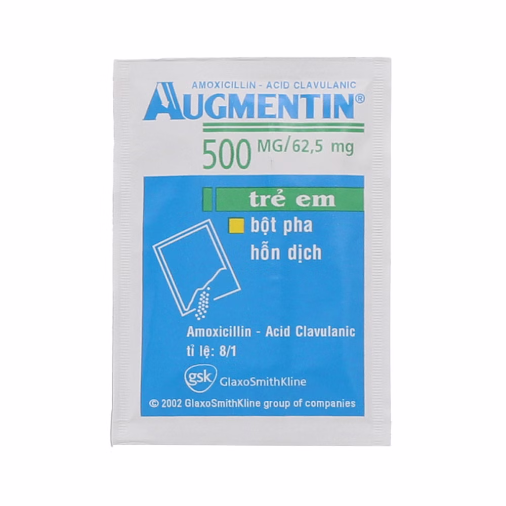 - Hoạt chất: Amoxicillin 500.00mg dưới dạng amoxicillin trihydrate, Clavulanic acid 62.50mg dưới dạng kali clavulanate trong một gói.