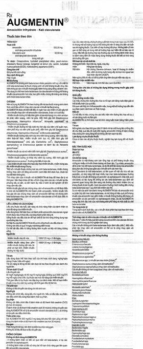 Tính nhạy cảm của vi khuẩn với Augmentin 500mg sẽ thay đổi theo địa lý và thời gian. Nên tham khảo dữ liệu về tính nhạy cảm của các vi khuẩn tại địa phương nếu có sẵn, và tiến hành lấy mẫu vi sinh và xét nghiệm về tính nhạy cảm nếu cần.
